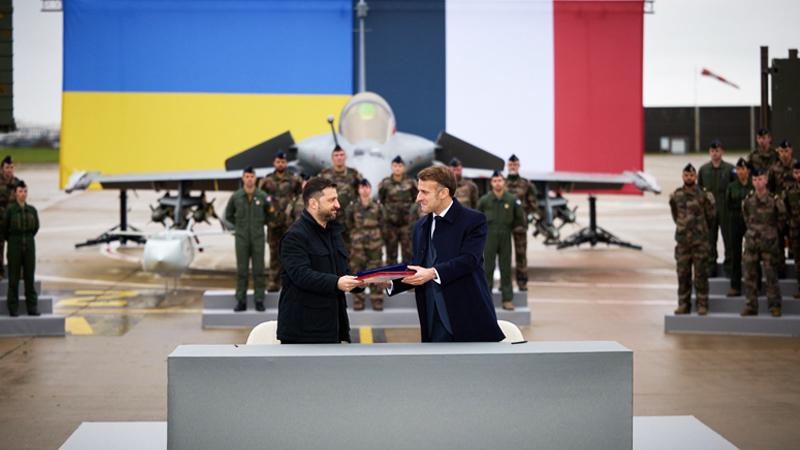 Ο Πρόεδρος της Ουκρανίας Βολοντιμίρ Ζελένσκι και ο Γάλλος ομόλογός του, Εμανουέλ Μακρόν υπέγραψαν χθες, στο Παρίσι δήλωση πρόθεσης για τη μελλοντική αγορά έως και 100 μαχητικών Rafale από το Κίεβο, ανοίγοντας τον δρόμο για την πρώτη προμήθεια του συγκεκριμένου γαλλικού αεροσκάφους στην ουκρανική πολεμική αεροπορία.